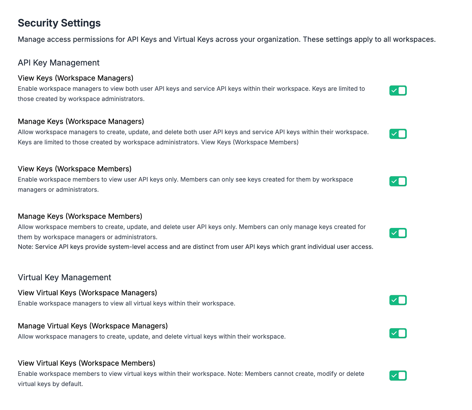 • Granular access permissions for API Keys and Virtual Keys across your organization