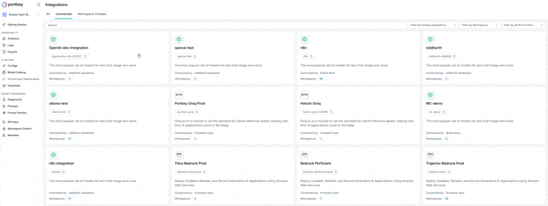 Portkey’s Model Catalog is designed to be a central hub for all the models you use, providing a unified interface for both supported and private models. By adding your custom or fine-tuned models to the catalog, you can seamlessly integrate them into your applications, leverage Portkey’s unified API signature, and benefit from centralized logging, monitoring, and management. This is especially useful for: